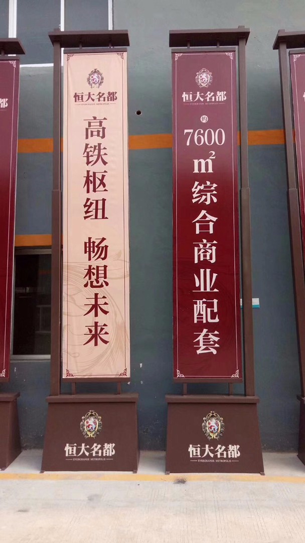 潮州恒大名都项目位于潮州市北端副中心,恒大名都的道旗都由我司专业设计师按照恒大的要求个性货设计,突出恒大名都的形象。