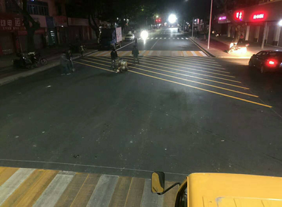 市政道路 黄色禁停格 实线标线 交通划线 热熔标线施工